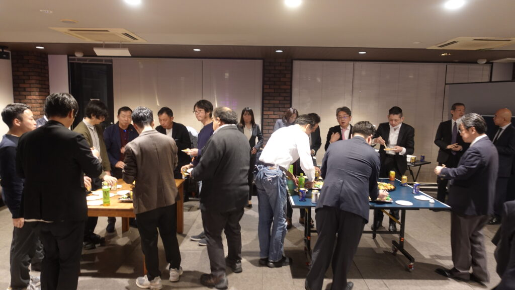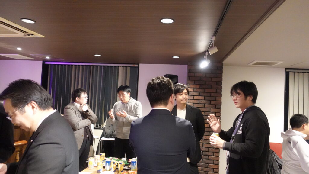 毎度おなじみの交流会は、お飲み物片手に軽食をつまみながら、仕事の悩みはもちろん趣味やプライベートの話まで、業種や世代を問わず何でも気兼ねなく話し合える場となっています。