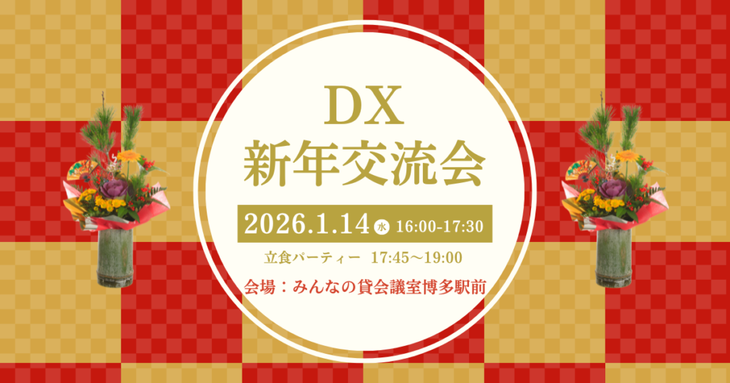 2026年初となる交流会は、新年会を兼ねて福岡DXコミュニティ会長と地域のソリューション企業のDXの推進者などにお話いただき、イベント後に立食パーティーを開催いたします!